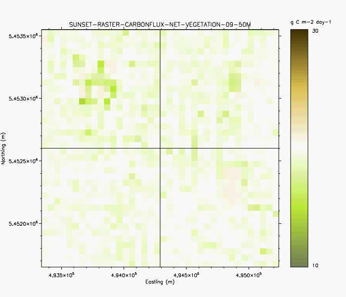 SUNSET-RASTER-CARBONFLUX-NET-VEGETATION-09-50M | Modelled net carbon emissions / uptake from soils / vegetation for month of September | g C m-2 day-1 | Geotiff Statistics |